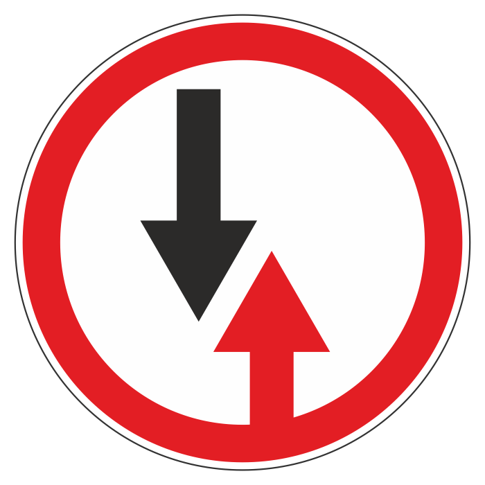 Дорожный знак 2.6 «Преимущество встречного движения» (металл 0,8 мм, II типоразмер: диаметр 700 мм, С/О пленка: тип А коммерческая) в Твери купить