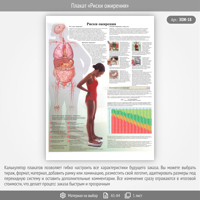 Плакат «Риски ожирения» (ЗОЖ-18, 1 лист) в Твери купить