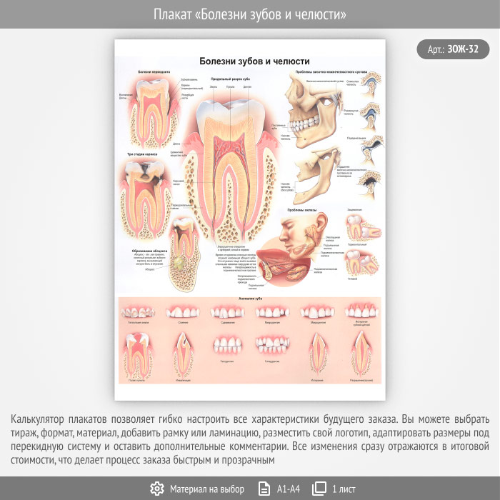 Плакат «Болезни зубов и челюсти» (ЗОЖ-32, 1 лист) в Твери купить